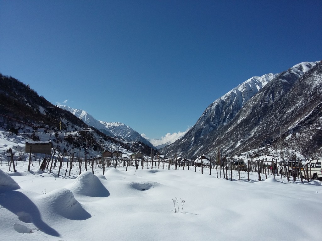 At last we reached at Yumthang Valley. The views of the valley are beautiful. You need wear sunglasses to protect eyes from the reflection of sunlight on snow. Before going to valley, you need to wear rubber boots which are available there.